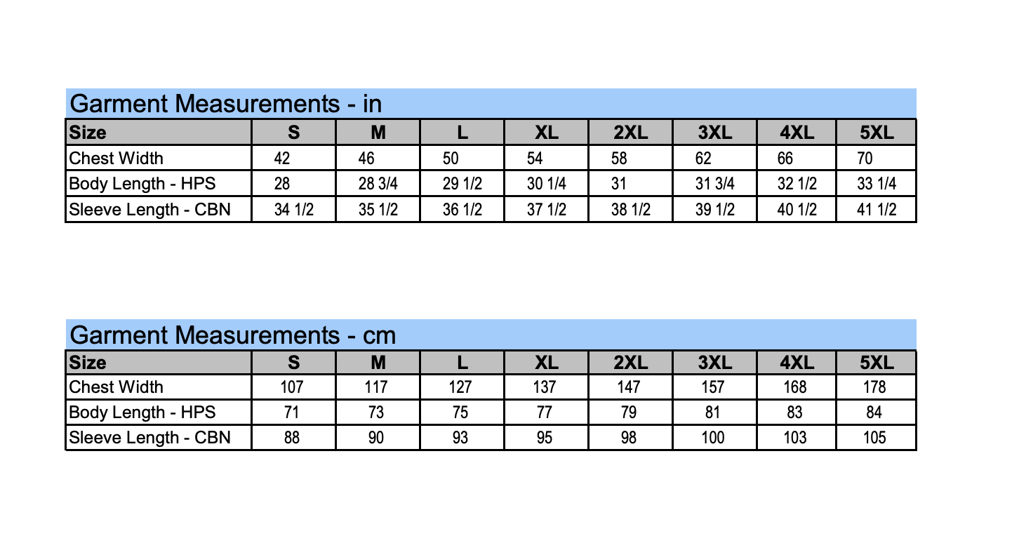 Click to view sizing chart.