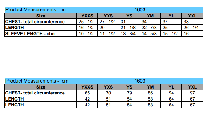 Click to view sizing chart.